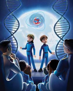 Professor Quantum looking into camera
