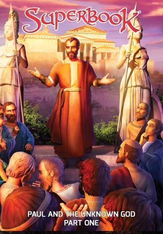 Superbook launches Chris, Joy and Gizmo—plus a droid named QBIT—on a two-part adventure through time and space. In Part 1, travel to Athens, where the Apostle Paul challenges people who believe in many gods, including an unknown God. The children begin to see how to tell others about the one true God!